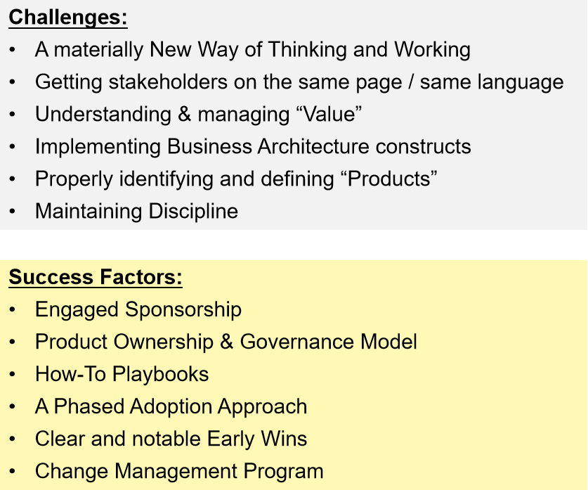 Challenges and Success Factors for Implementing a Product-centric Approach: